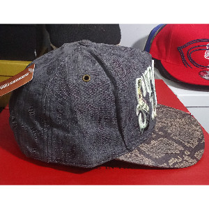 Features include a plastic sleek frontal design, snapback closure,brownish under-peak lining, stitching eyelets for ventilation, and a self-fabric dome at the top