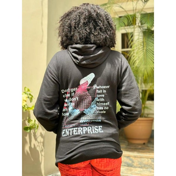 ENTERPRISE Sweatshirt de gola com capuz Color: Black Long-sleeved sweatshirt with a hooded collar and ribbed trim. It has a relaxed fit. It features a soft brushed interior and is made from fleece fabric.